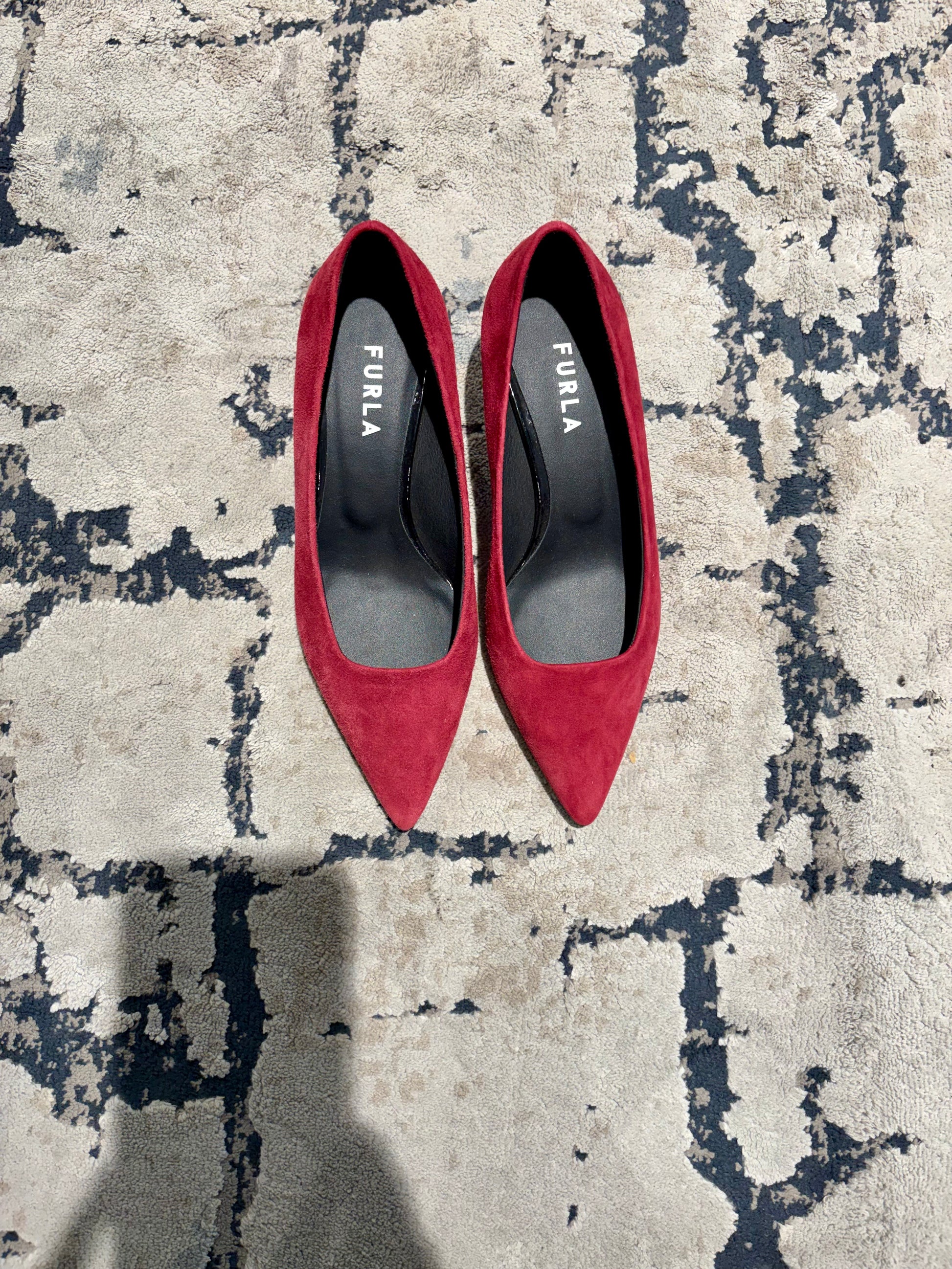 Décolleté a punta FURLA in pelle scamosciata color bordeaux con tacco a spillo.