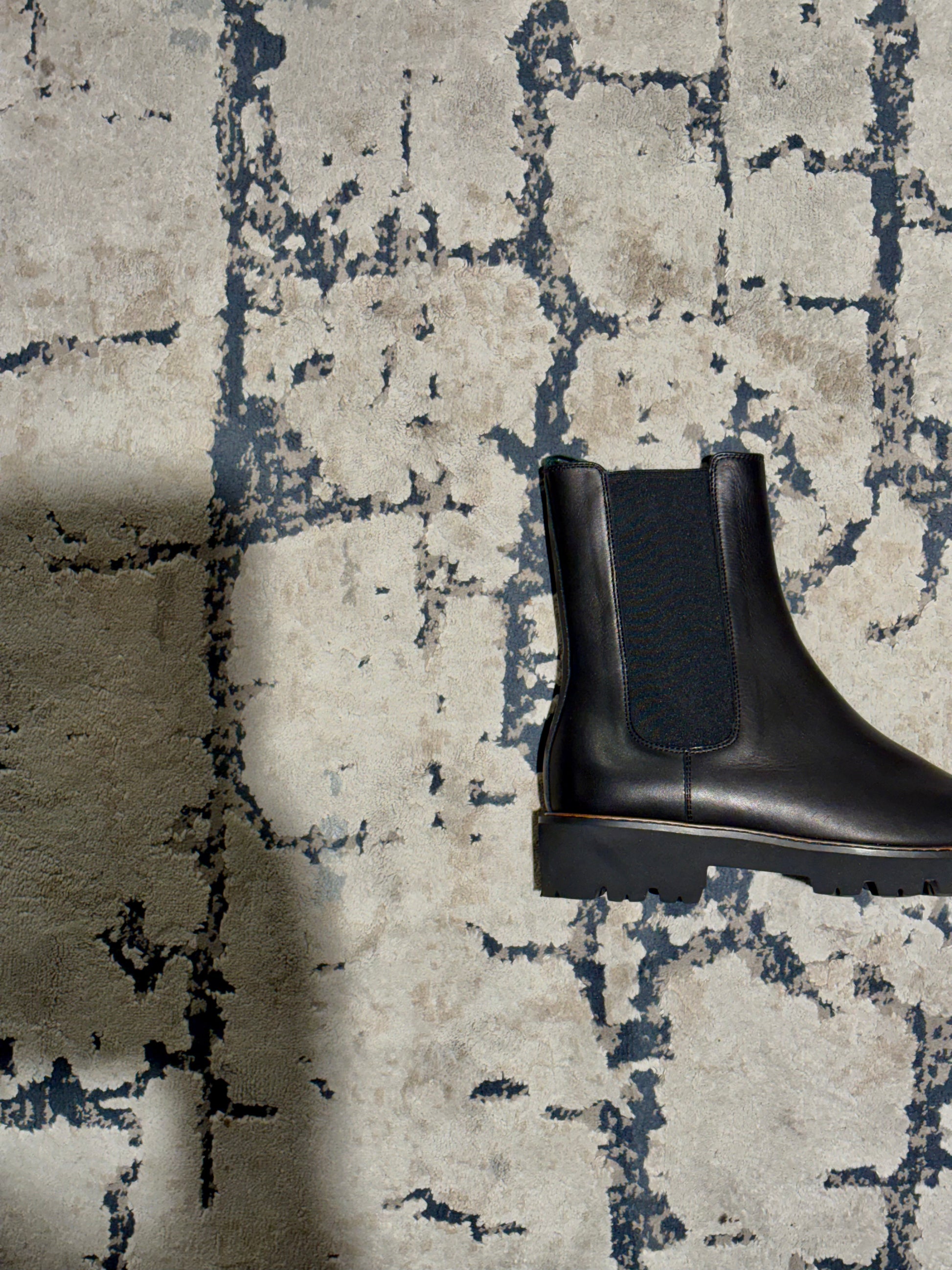 Un classico reinventato: il comfort intramontabile del Chelsea boot incontra la grinta moderna della suola robusta. Perfetti per chi cerca stile e praticità in ogni condizione. Modello stivaletto che arriva alla caviglia, caratterizzato dai pannelli elastici laterali, che garantiscono una calzata facile e veloce. Realizzati in vera pelle liscia di alta qualità in nero profondo. Suola in gomma spessa e dentellata, di tendenza. Offre maggiore aderenza, isolamento dal freddo e un tocco di altezza.
